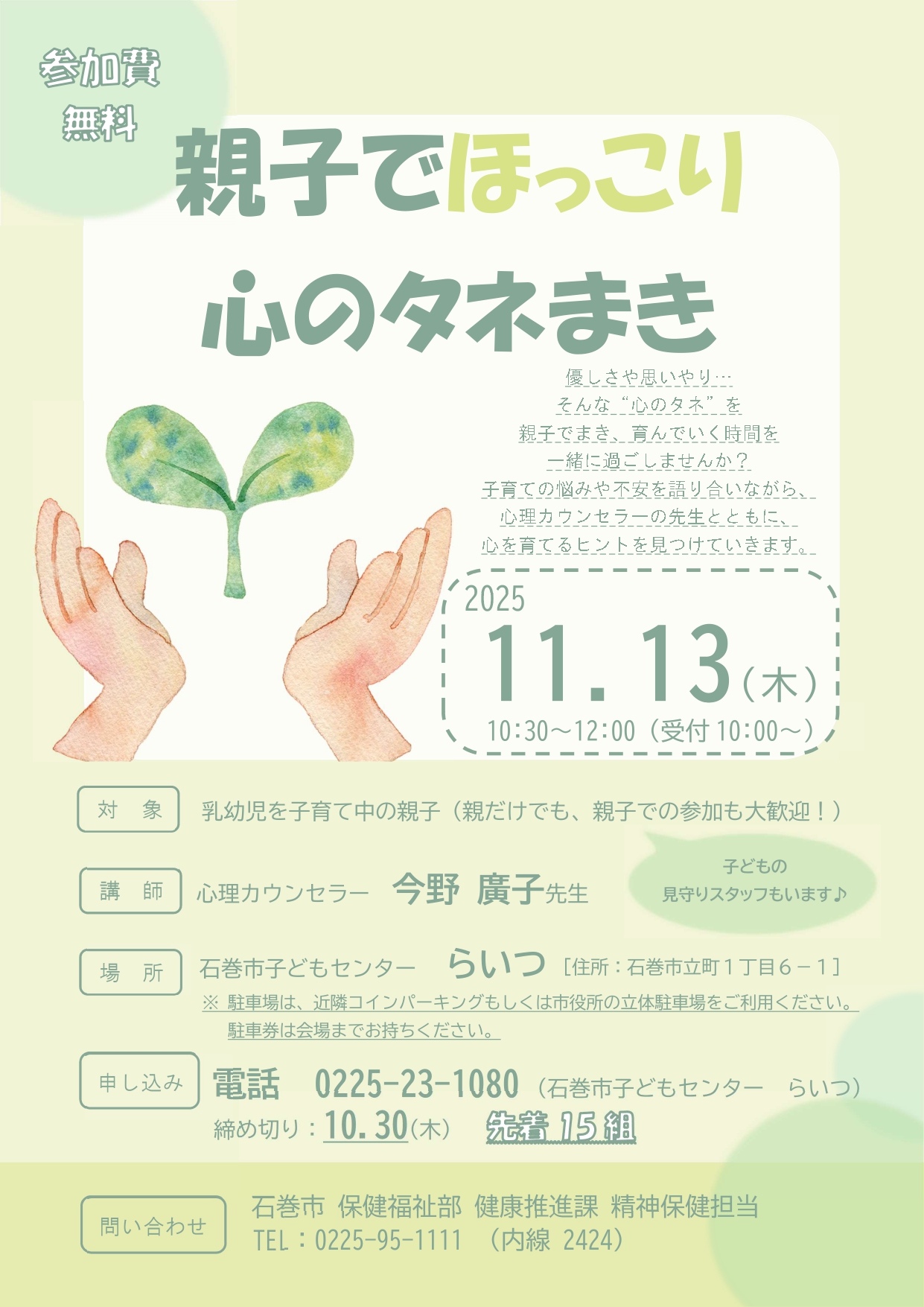 親子でほっこり心のタネまき inらいつ by石巻市健康推進課