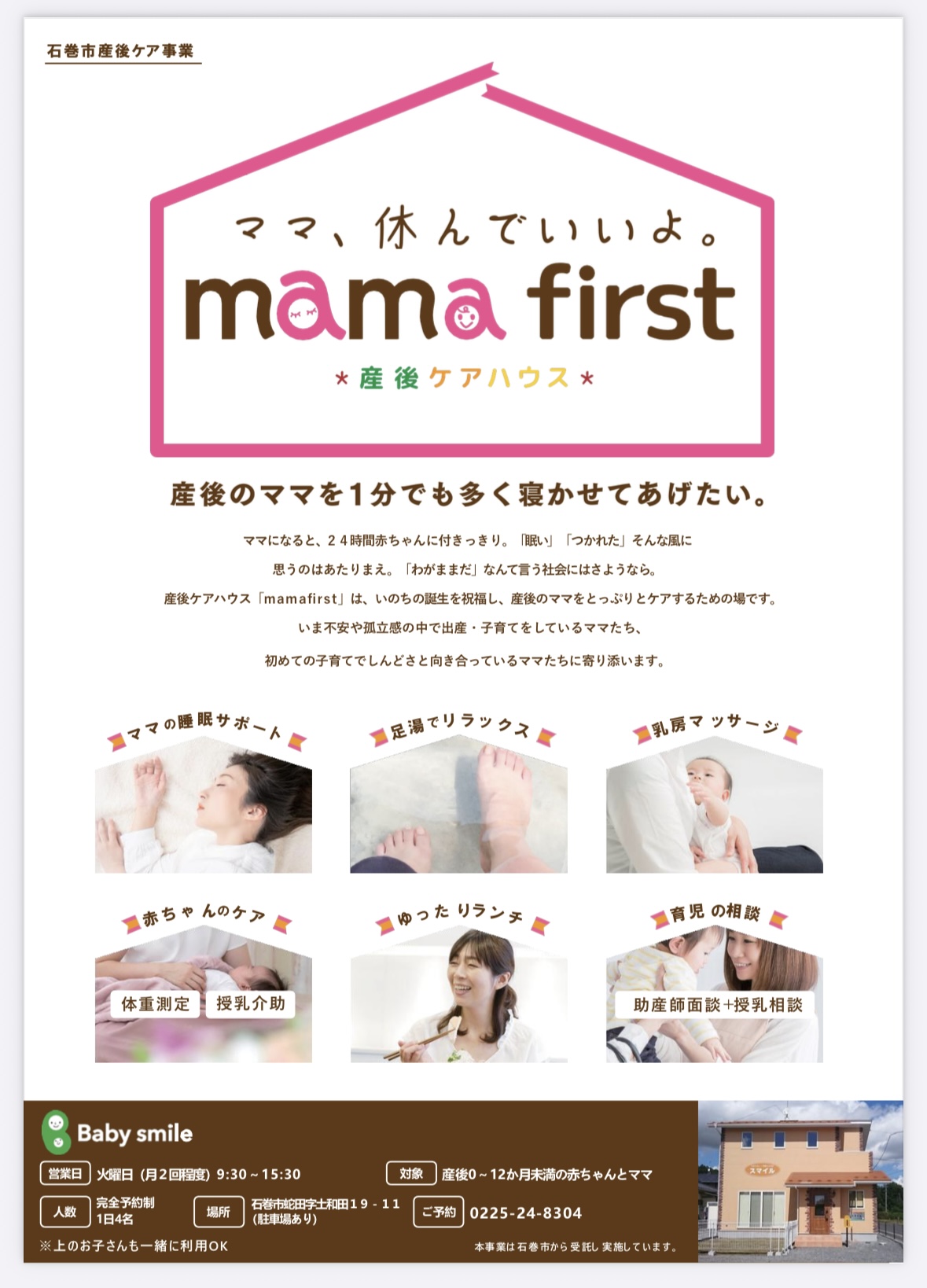 ベビースマイル石巻では令和3年4月より石巻市の委託により産後ケア「ママファースト」を開催してきました。