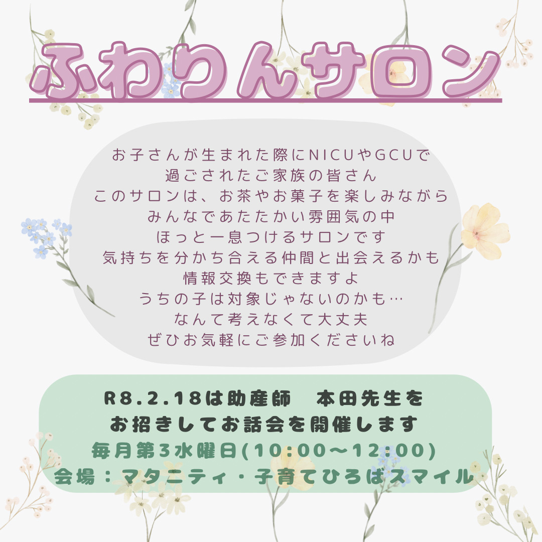 「ふわりんサロン」のお知らせです(NICU・GCU卒のお子さん)