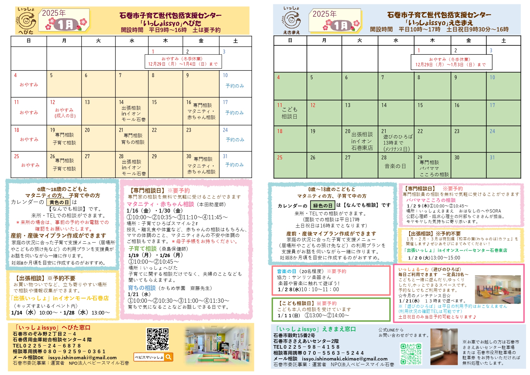 石巻市子育て世代包括支援センター「いっしょ issyo」です。