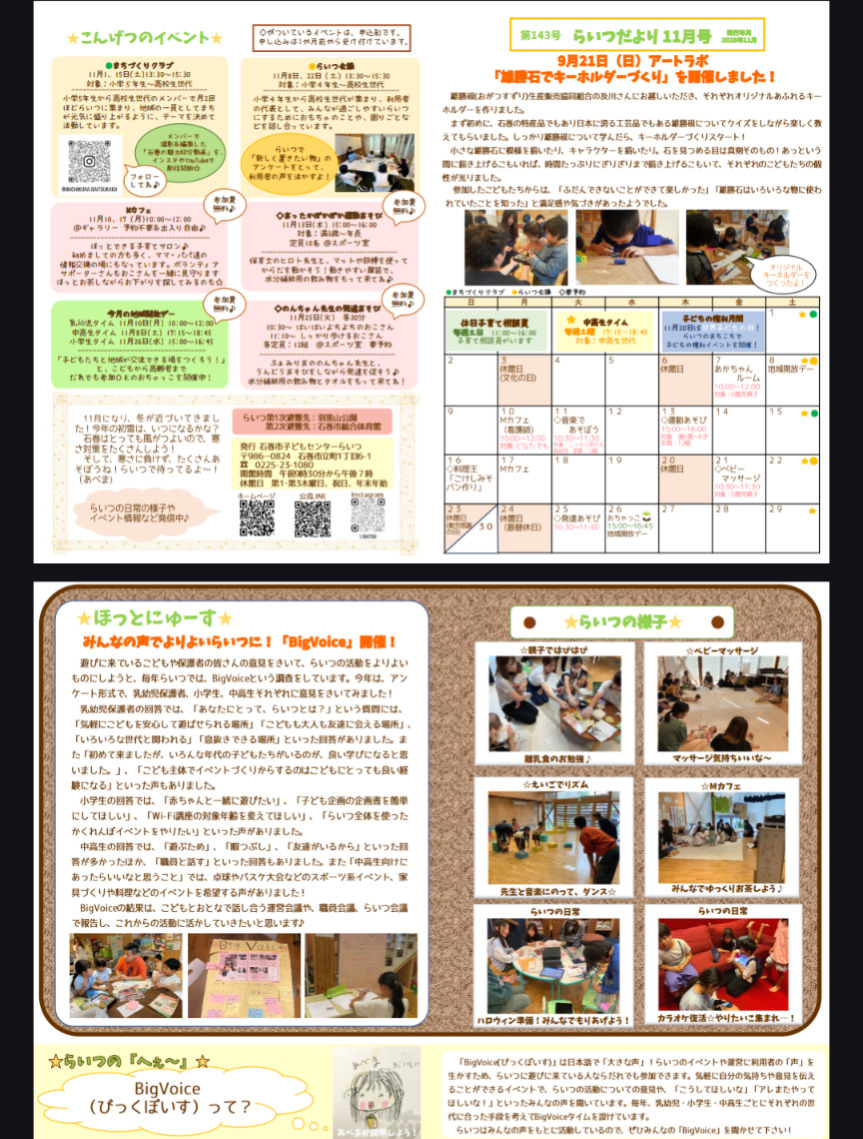 石巻市こどもセンター らいつ の11月通信ができました😊
