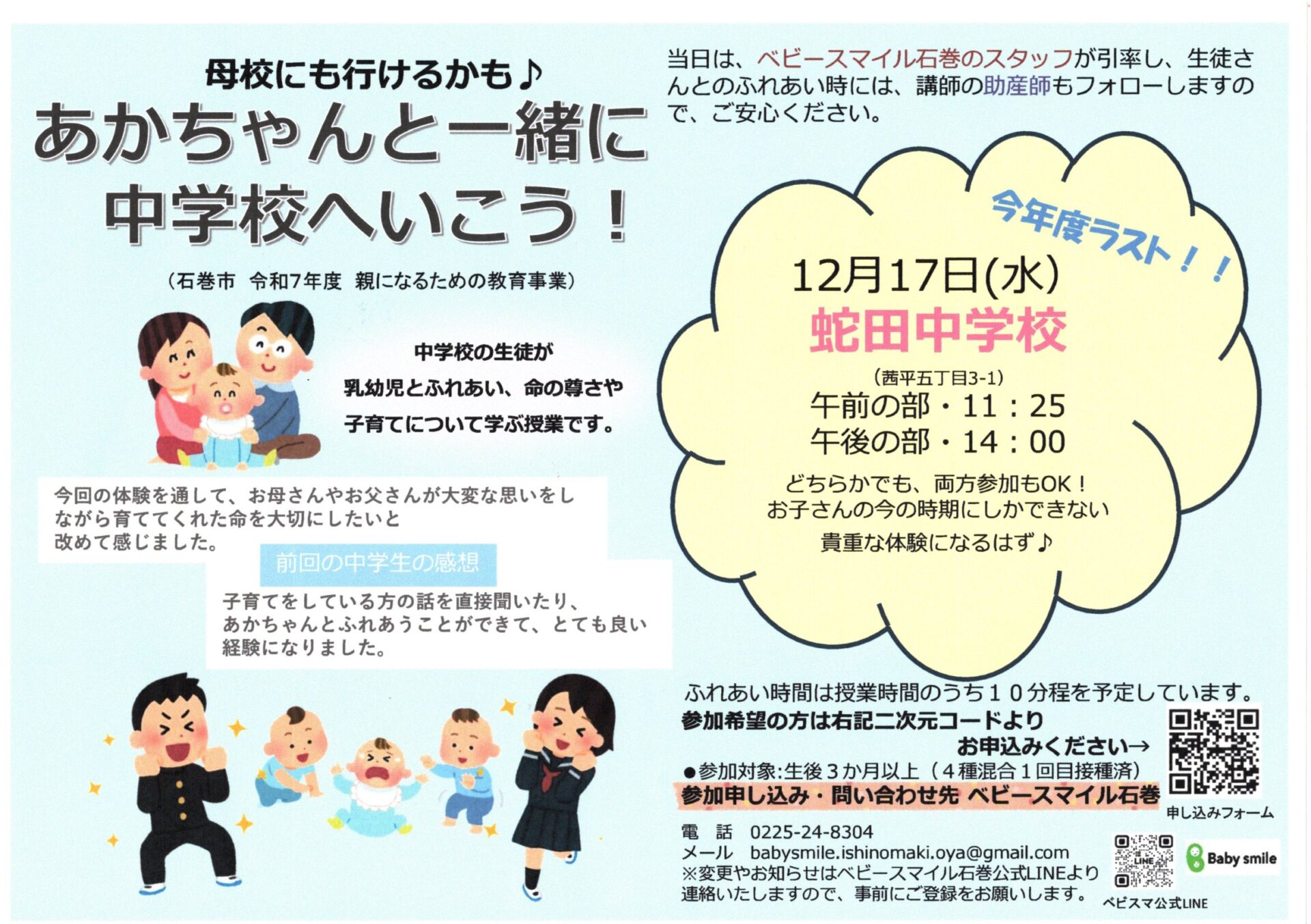 親になるための教育事業2025🏫「蛇田中学校」のおしらせ