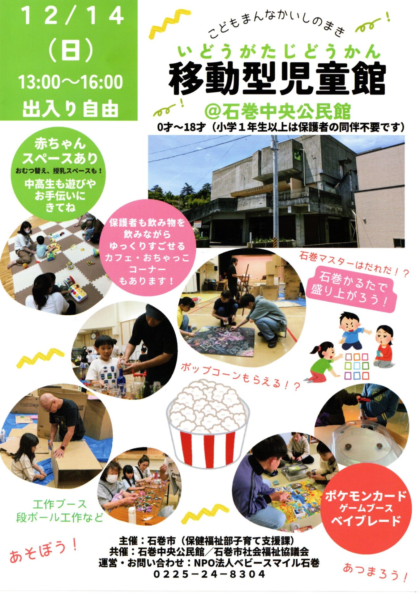 子育て相談窓口☆issyoへびた情報提供☆「移動型児童館@石巻中央公民館」のおしらせ
