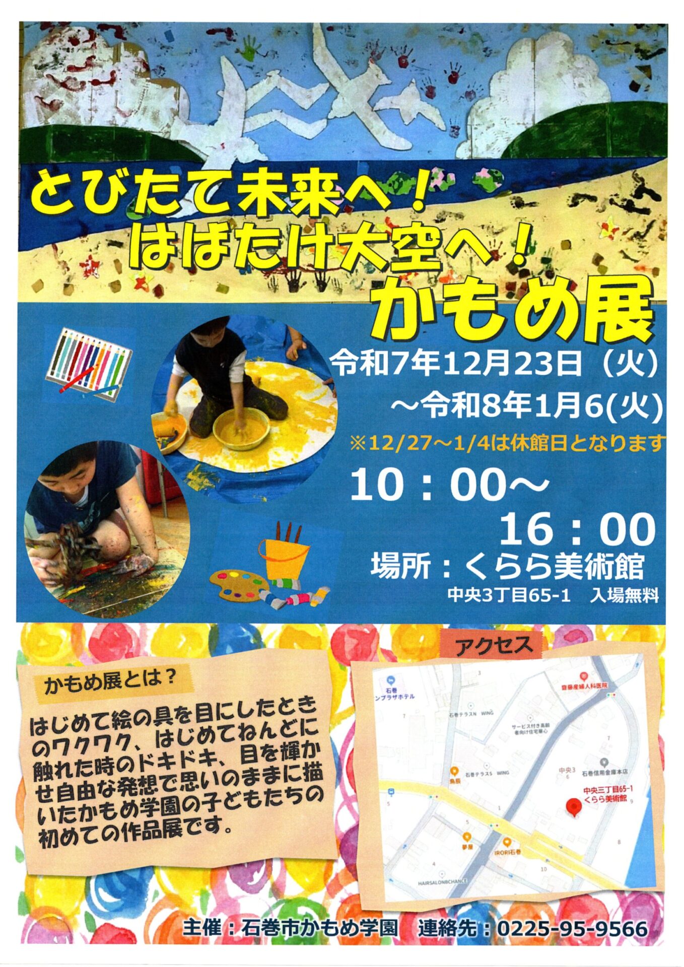 石巻市かもめ学園さんより「とびたて未来へ!はばたけ大空へ!かもめ展」のお知らせが届きました。