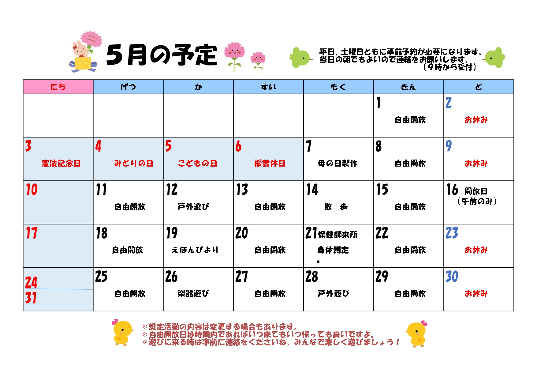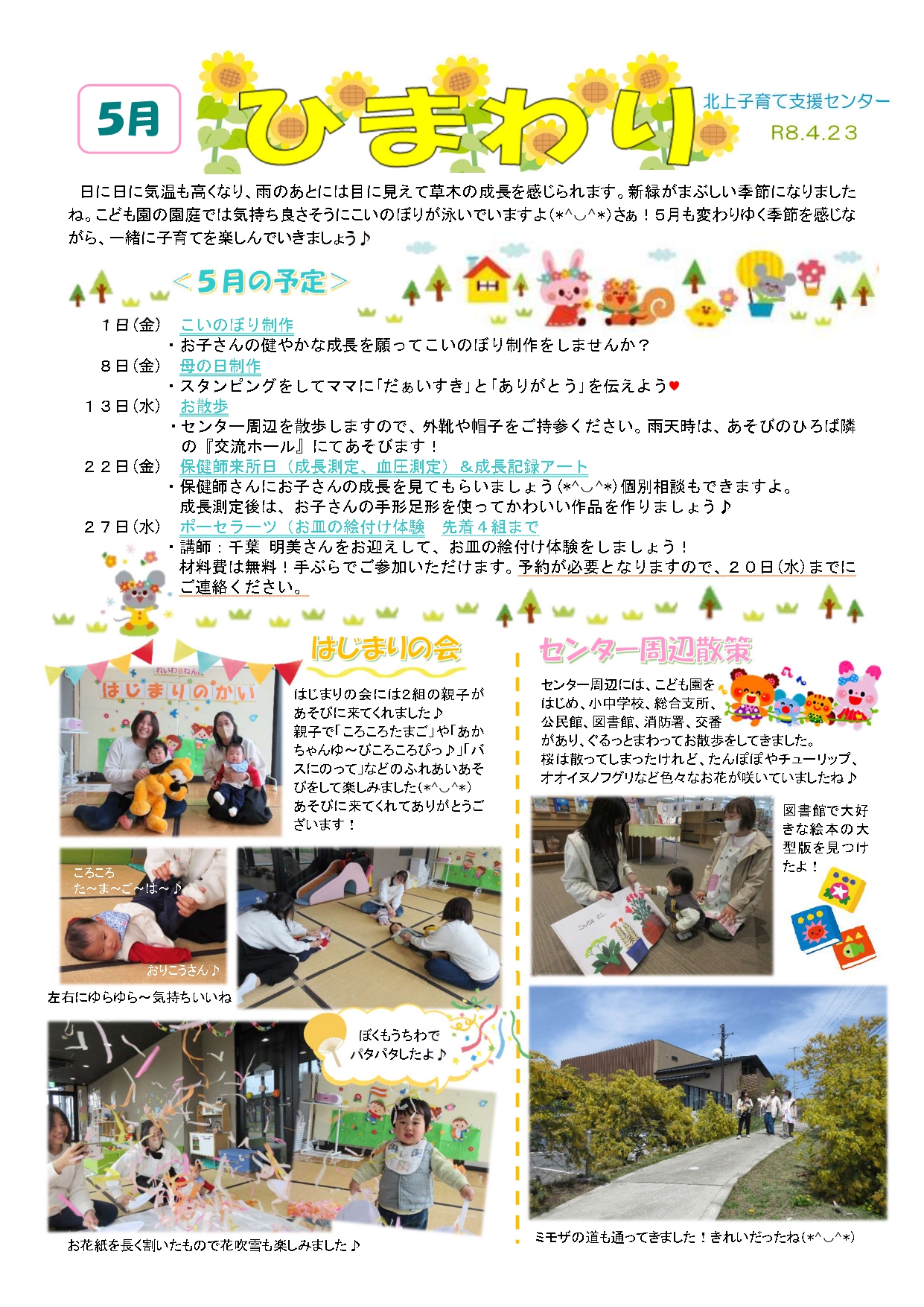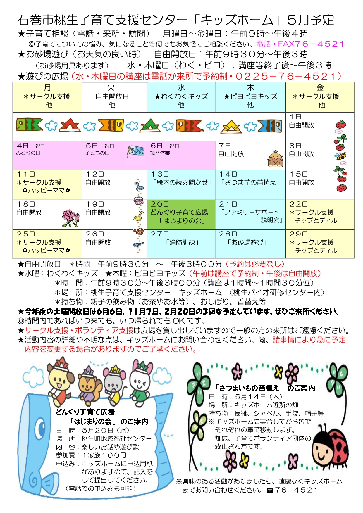子育て相談窓口☆issyoへびた情報提供☆「子育て支援センター5月カレンダー(スマイル・河南・桃生・河北・北上・雄勝)」のおしらせ子育てひろば・子育て支援センターの5月のカレンダーが届きました♪ たのしいイベントも盛りだくさんです!ぜひご参加くださいね!! ★子育てひろばスマイル★