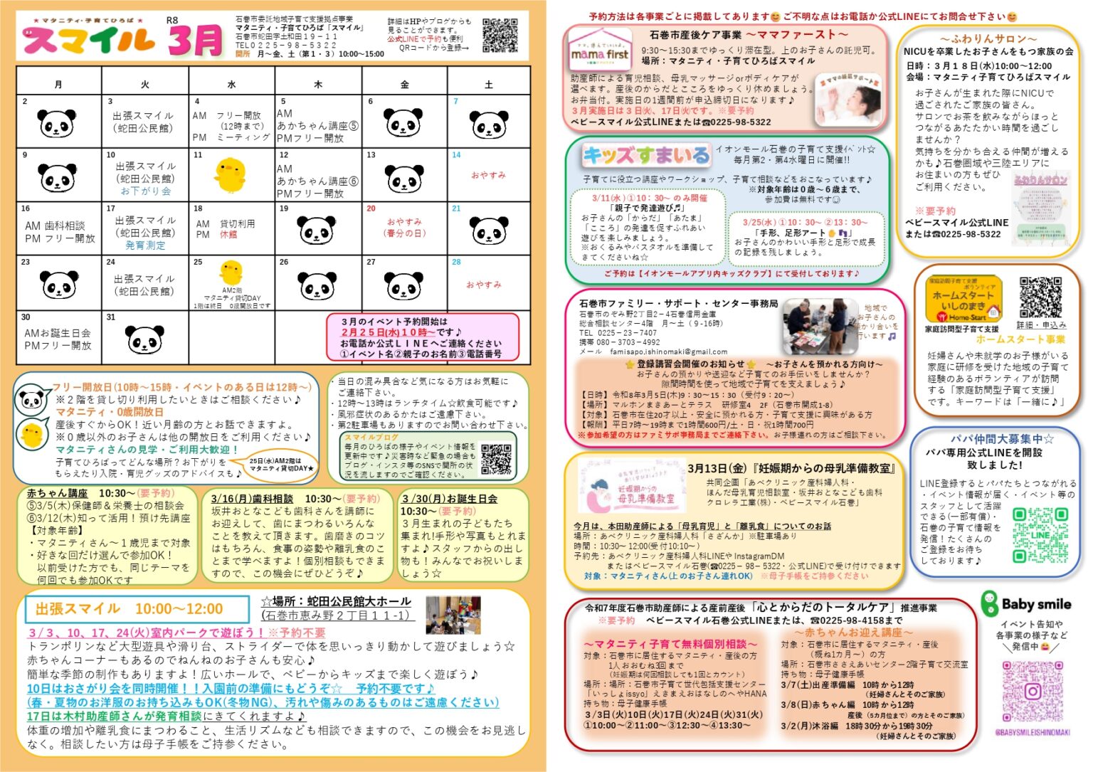 スマイルからのお知らせ🐑こんにちは(*^^*) 今年もあっという間に2ヶ月がすぎ春が近づいできましたね🌷🌸 暖かい日もあれば寒い日もありまだまだ体調には気をつけなければ行けないですね☺️😷 さてさて、3月の予定は…